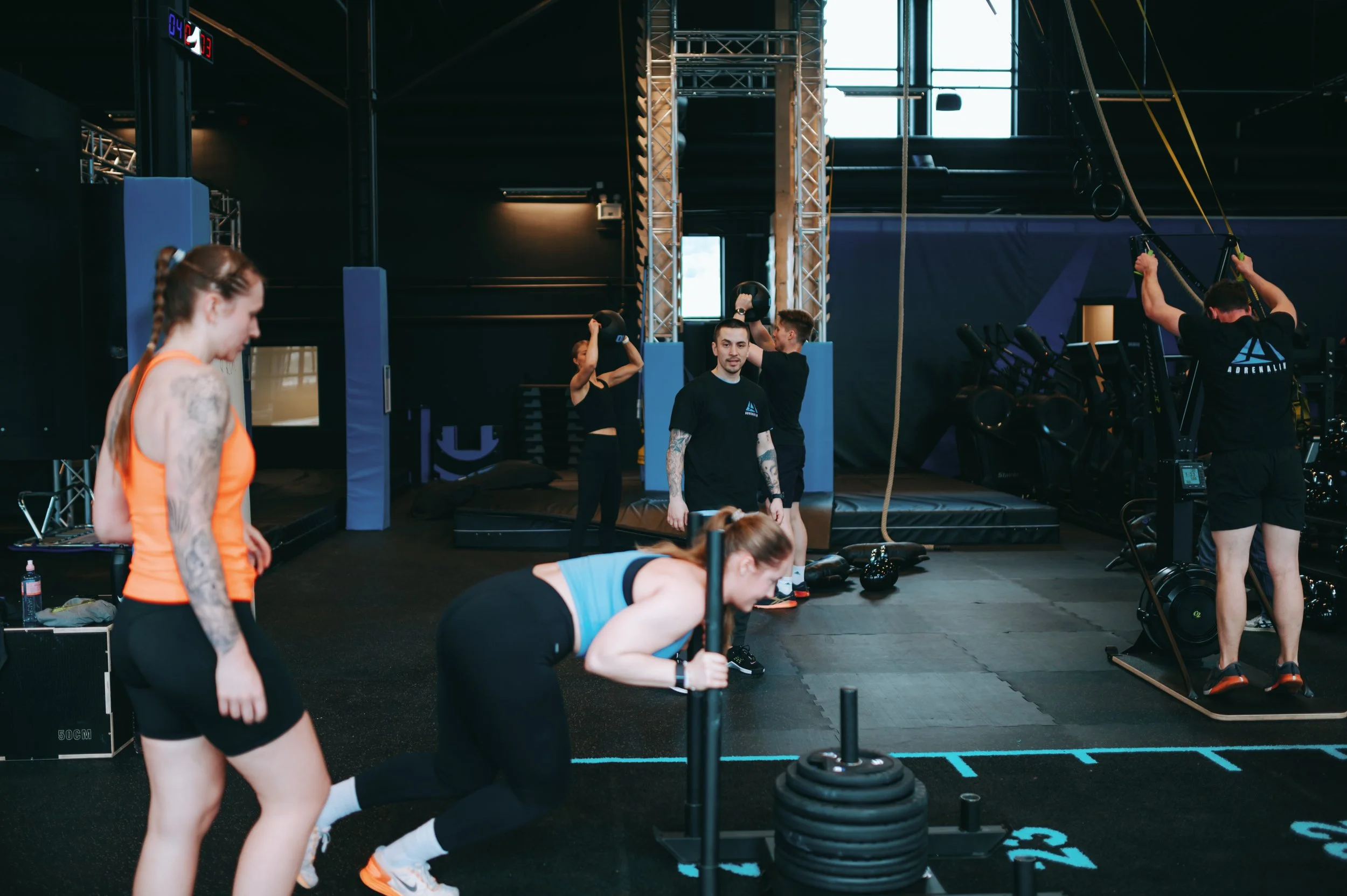 Trene i gruppetimer med fokus på Hyrox-øvelser, i Drammen eller Kristiansand